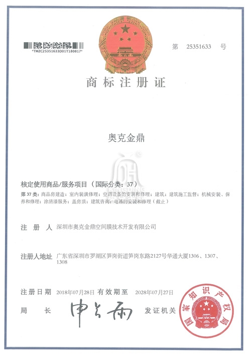 深圳市奧克金鼎空間膜技術開發有限公司成立已有18年,注冊資金1680萬,目前是國內高端膜結構技術公司之一。公司擁有先進的膜材,ETFE、PTFE及PVC自動加工設備和3D3S、3DMAX、 EASY、SMCAD、STCAD等多套設計軟件。公司以董事會為領導核心,下設總工辦、行政部、銷售部、采購部、設計部、網絡部、工程部、財務部等職能部門。